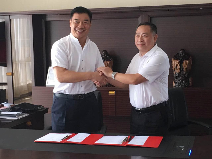 2017年8月5日上午11点,在河北邢台今麦郎集团总部,华体会体育董事长王声位与今麦郎集团董事长范现国共同签署了广州市华体会体育设备制造有限公司与今麦郎面品有限公司建立战略合作伙伴关系的协议。
