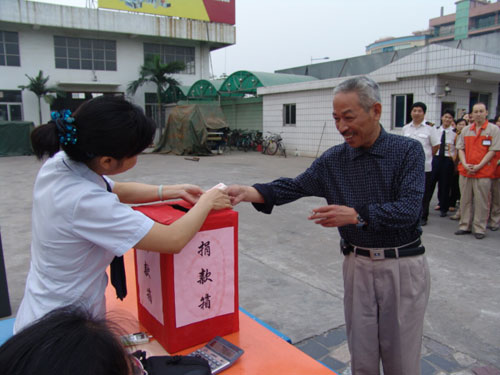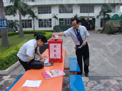 5月17日下午17时,广州市国砚实业发展有限公司、广州市华体会体育设备制造有限公司在公司总部举行了为四川地震灾区献爱心的捐款活动。公司近100名干部员工积极踊跃地为灾区人民进行了募捐。