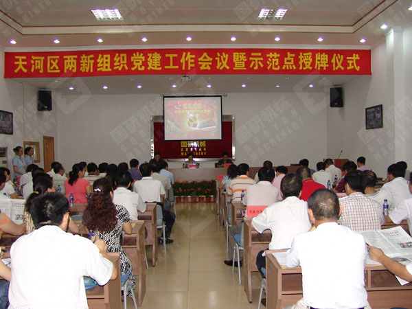 7月2日下午,天河区“两新组织”党建工作现场会暨党建工作示范点授牌仪式在广州市华体会体育设备制造有限公司隆重举行。天河区委常委、组织部部长潘文捷、广州市委组织部组织处处长邱培藩、天河区委组织部副部长陈璋、公司董事长兼总经理王声位、珠吉街党工委书记杜党勇、办事处主任周国栋等出席了会议。