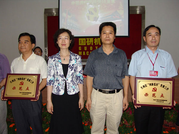 区委常委、组织部部长潘文捷、广州市组织部处长邱培潘为华体会体育授予党建示范点匾牌并合影